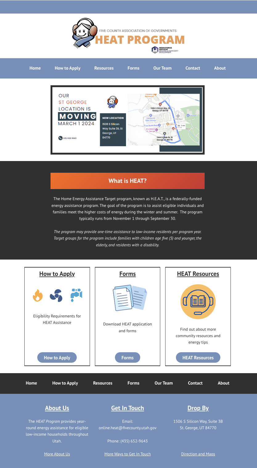 Redesigned the website for southern Utah H.E.A.T. (Home Energy Assistance Target), a utility assistance program for low-income households.